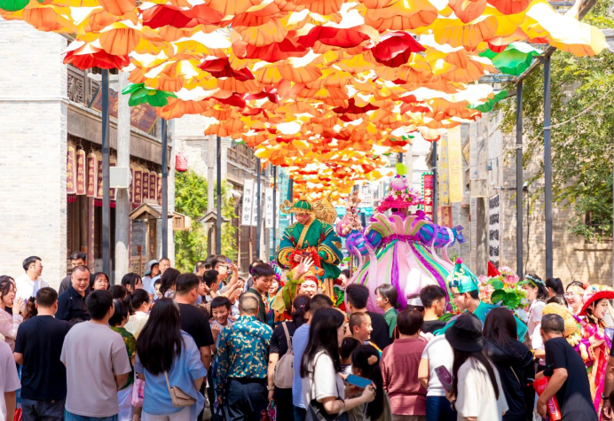 在“旅游+体育”领域,中牟塑造“跟着赛事去旅行”品牌,从郑州绿博园“足协杯第二现场”,再到引进2025年郑州市篮球联赛等活动,市民在中牟观看各项比赛的同时,还可以享受景区推出的专项优惠和参与郑州杉杉奥特莱斯·中牟店9周年店庆“折上折”等活动,收获“看球+购物+休闲”的复合体验。在“旅游+商业+时尚”领域,“全国景区门票当钱花”政策、“中原时尚 艺秀中牟”郑州时装周等活动持续点燃消费热情,此外,中牟还是综艺及微短剧的热门取景地,“微短剧+文旅”的创新尝试,吸引了众多游客打卡,实现了“以剧带景、以景促剧”的双向赋能。